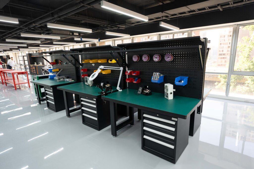 El Dry Lab cuenta con 505m2 de espacios dedicados al trabajo de ingeniería, electrónica y fabricación para modelamiento, simulación y prototipado en hardware.